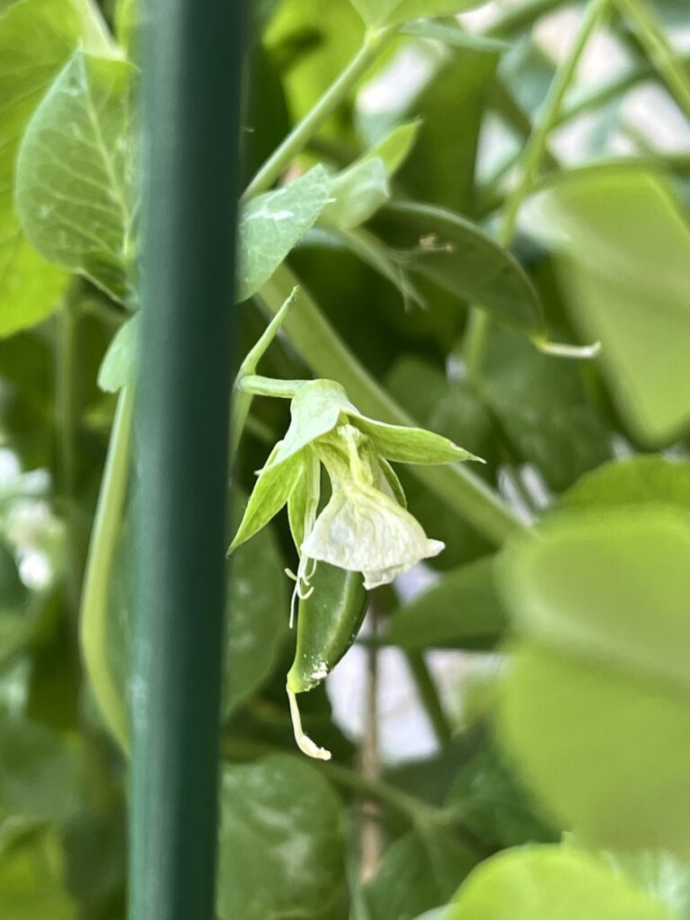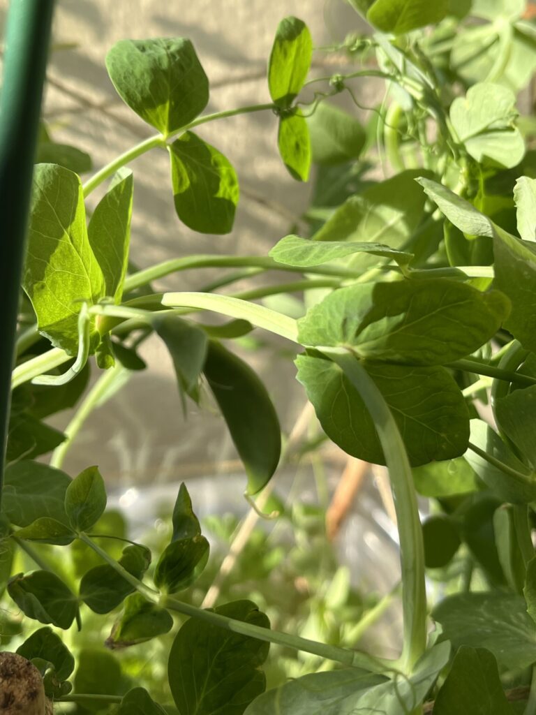 絹さやの赤ちゃんね、寒暖差が激しいと一気に成長が止まったり、逆にひょろっと伸びやすくなるよ。