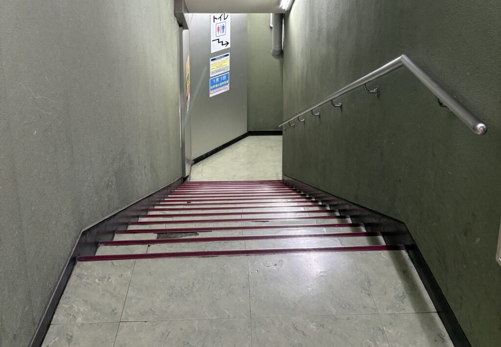 JR高速バスのりば側からは、エスカレーター(またはエレベーター)で地下に降りてまっすぐ進むルートが一番近くですが階段があります。