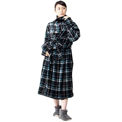 ボタンは前に2つ、くるぶしまでしっかり隠れるロング丈で、袖口にはやわらかいゴム入り。