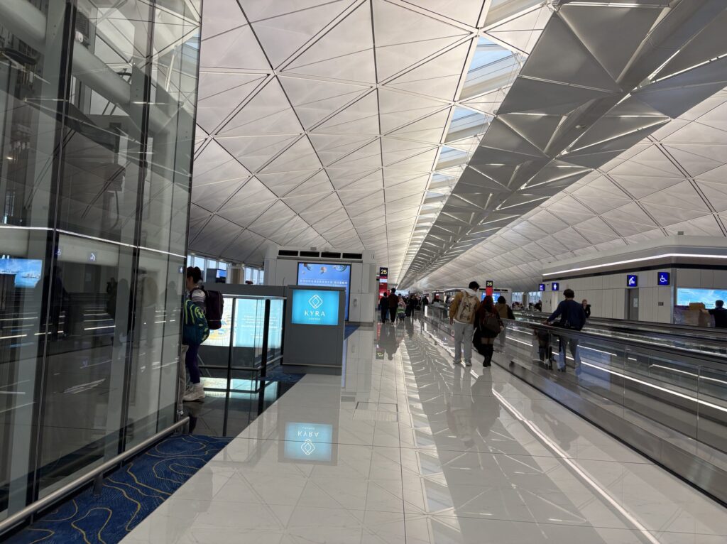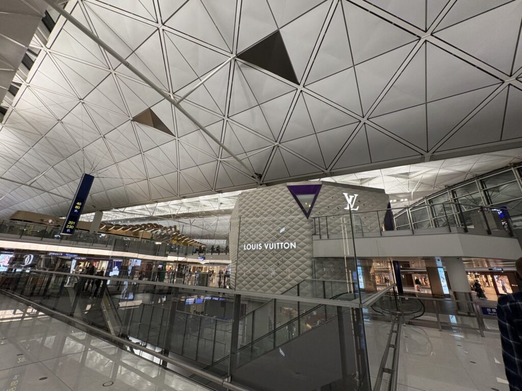 トランジットエリアを抜け、検査を通過して制限エリアへ。目の前に現れたのは、ひときわ存在感を放つ巨大なルイ・ヴィトンのショップ。「ああ、香港に来たな」と実感した瞬間です。