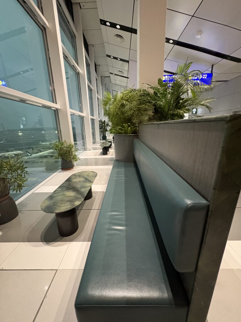 空港の通路を見渡せる開放的な景色が広がり、人が少なく落ちつきます。