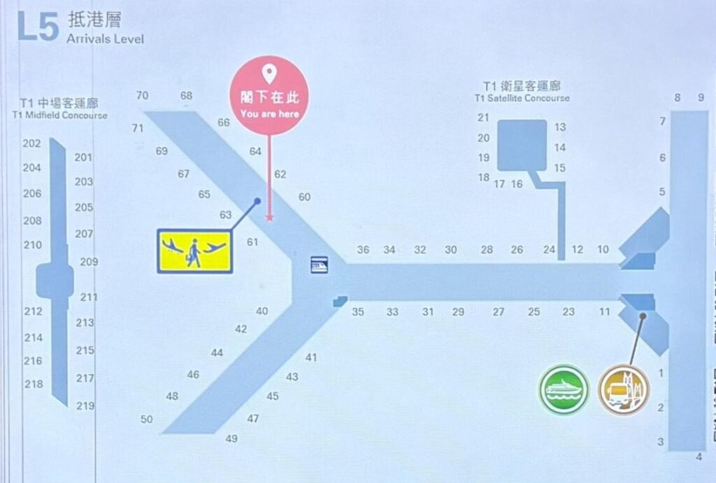 Hong Kong International Airport 第1ターミナルは横一直線の構造。