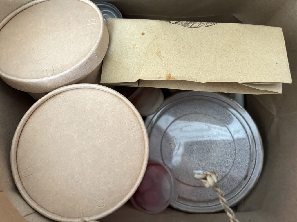 紙素材のパッケージが意外とおしゃれで、フルーツとソース類は別添え。
