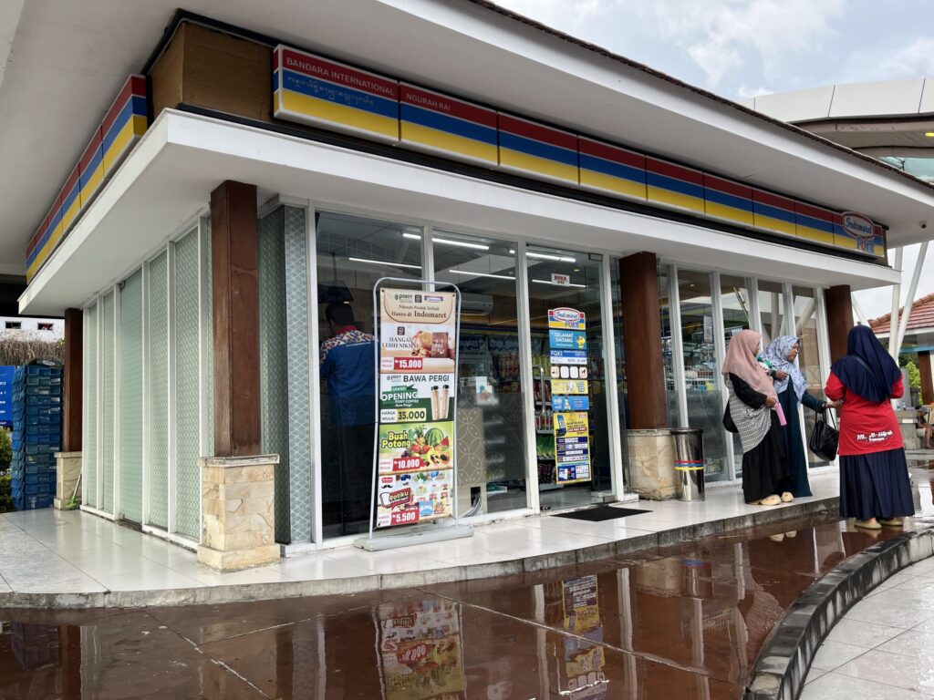 赤・青・黄色のストライプが目印の空港内コンビニです。