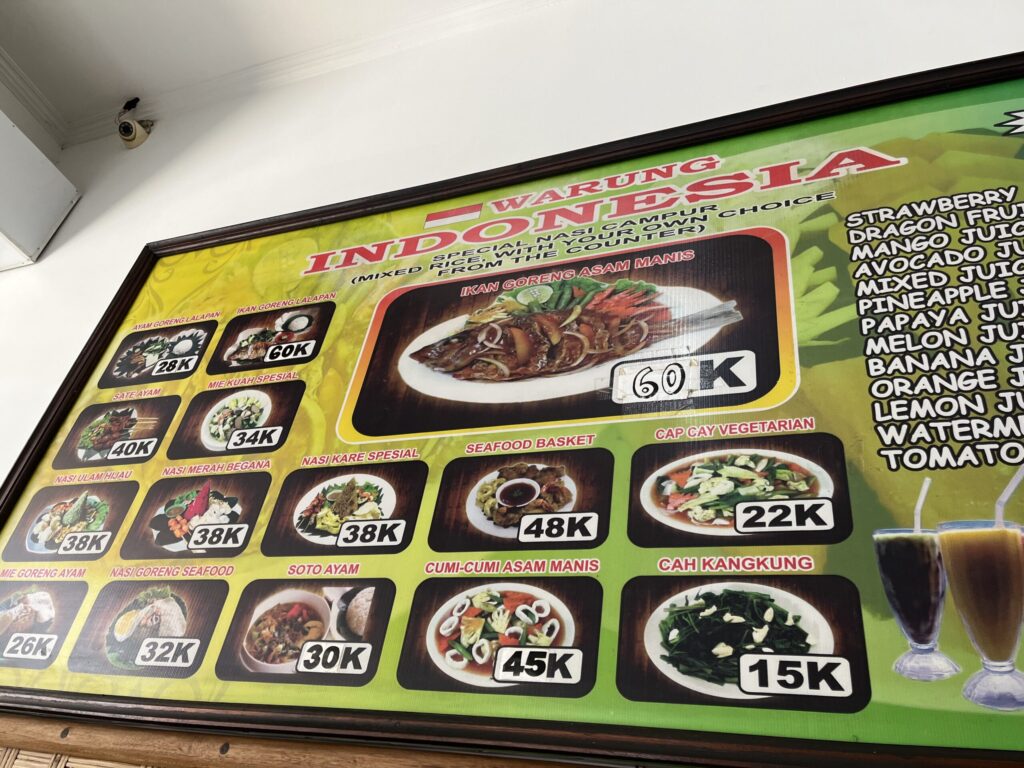向かった先は、ホテルから歩いて10分もかからない場所にある ワルンインドネシア(Warung Indonesia)