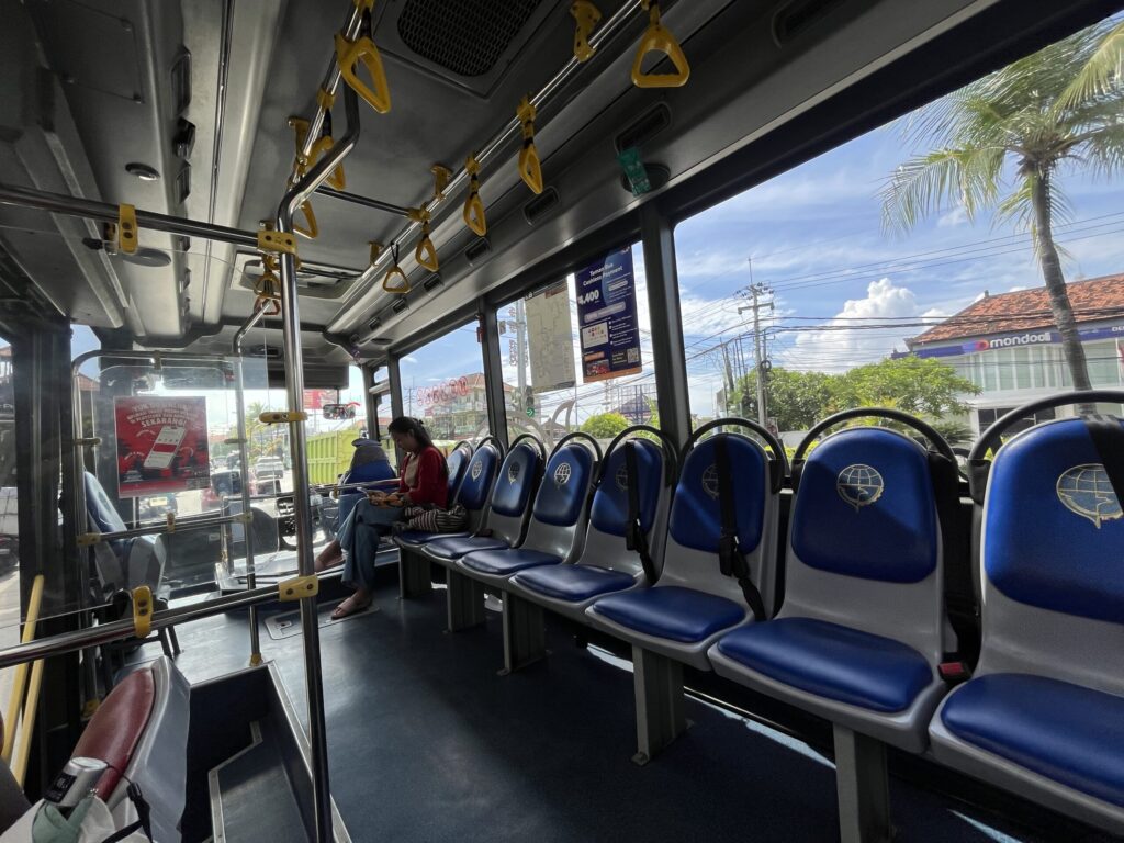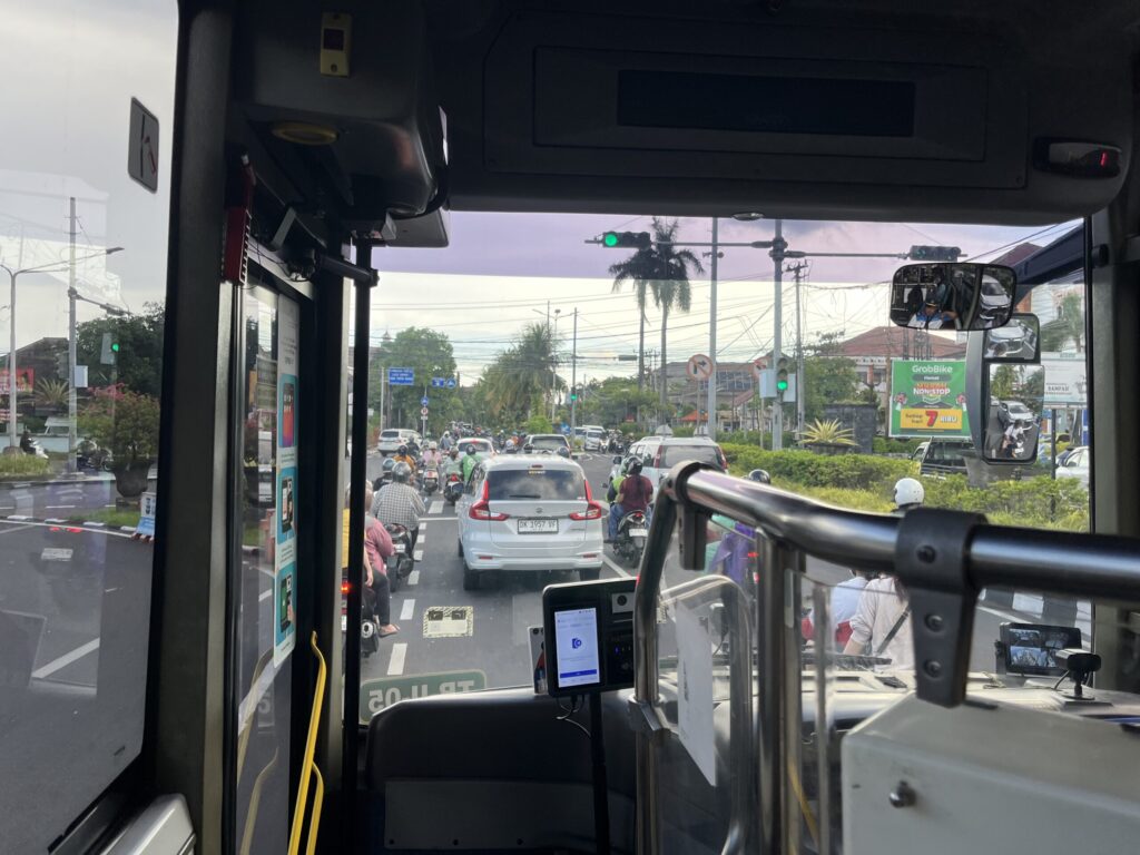バスはクタの街をゆっくり抜けて、最初の乗り換えポイントである
