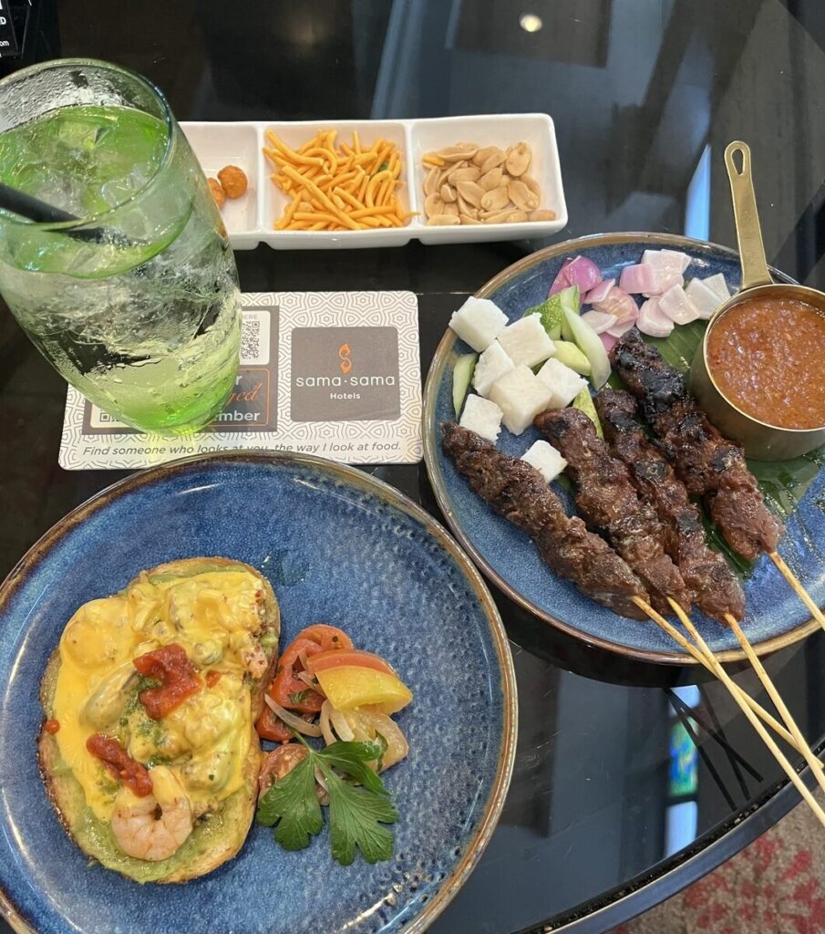 香ばしいマレーシア名物サテと、海の香りが広がるオープンサンド。