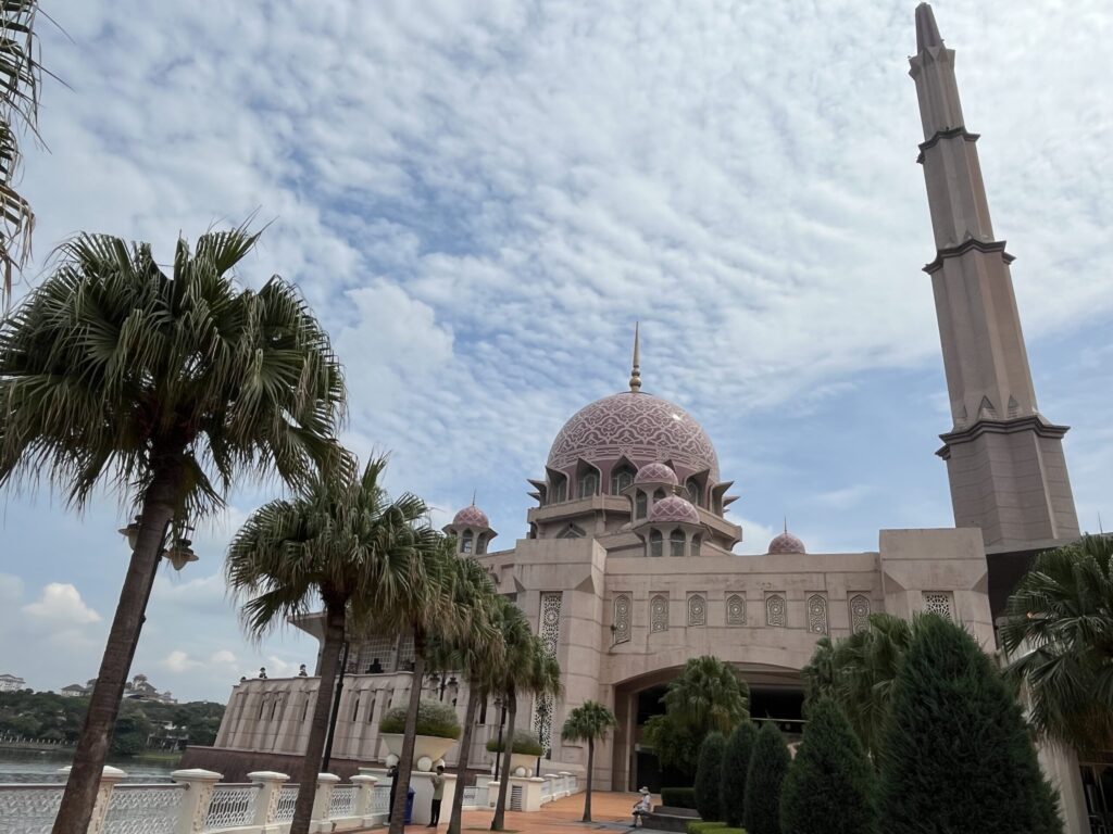 プトラジャヤの中心に建つ淡いピンク色の美しいモスク。湖に浮かぶような姿はフォトジェニックで、「ピンクモスク」と呼ばれています。