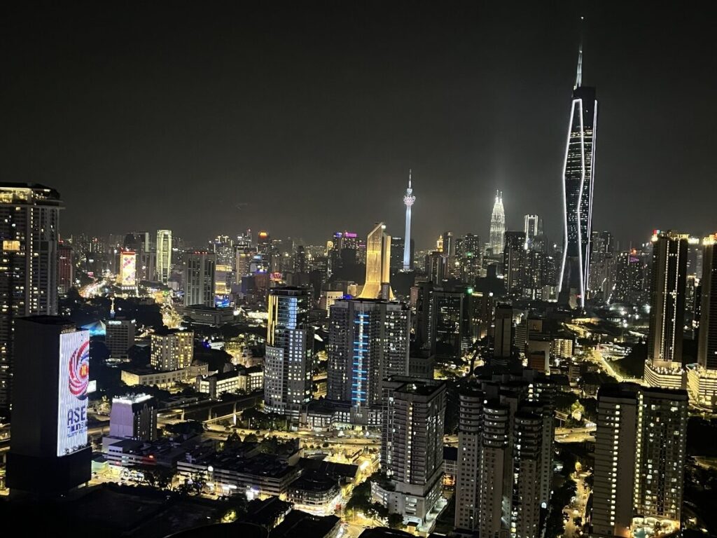 部屋の窓からは、クアラルンプールのきらめく夜景が広がります。