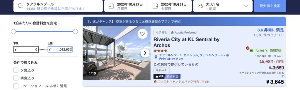 Agodaで“Riveira City Art – KL Central”をチェックしたら、1泊なんと 3,645円