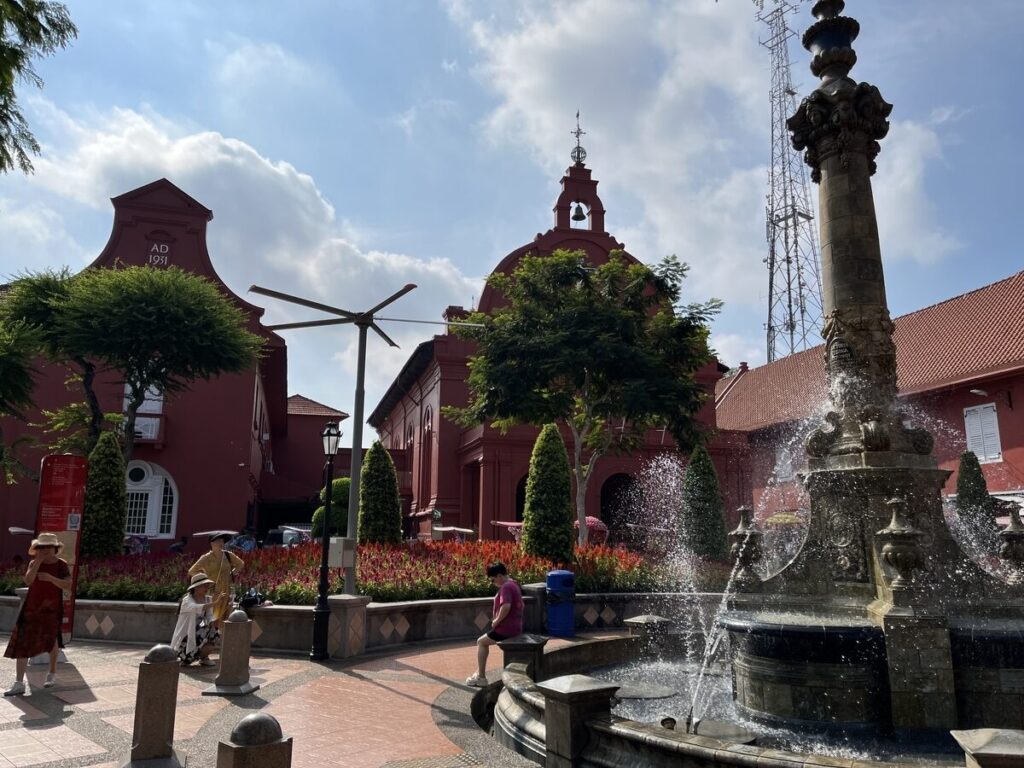 マラッカの街歩きでは、赤いオランダ広場、歴史的教会やショップハウスなど、東西文化が融合した独特の景観を楽しめます。
