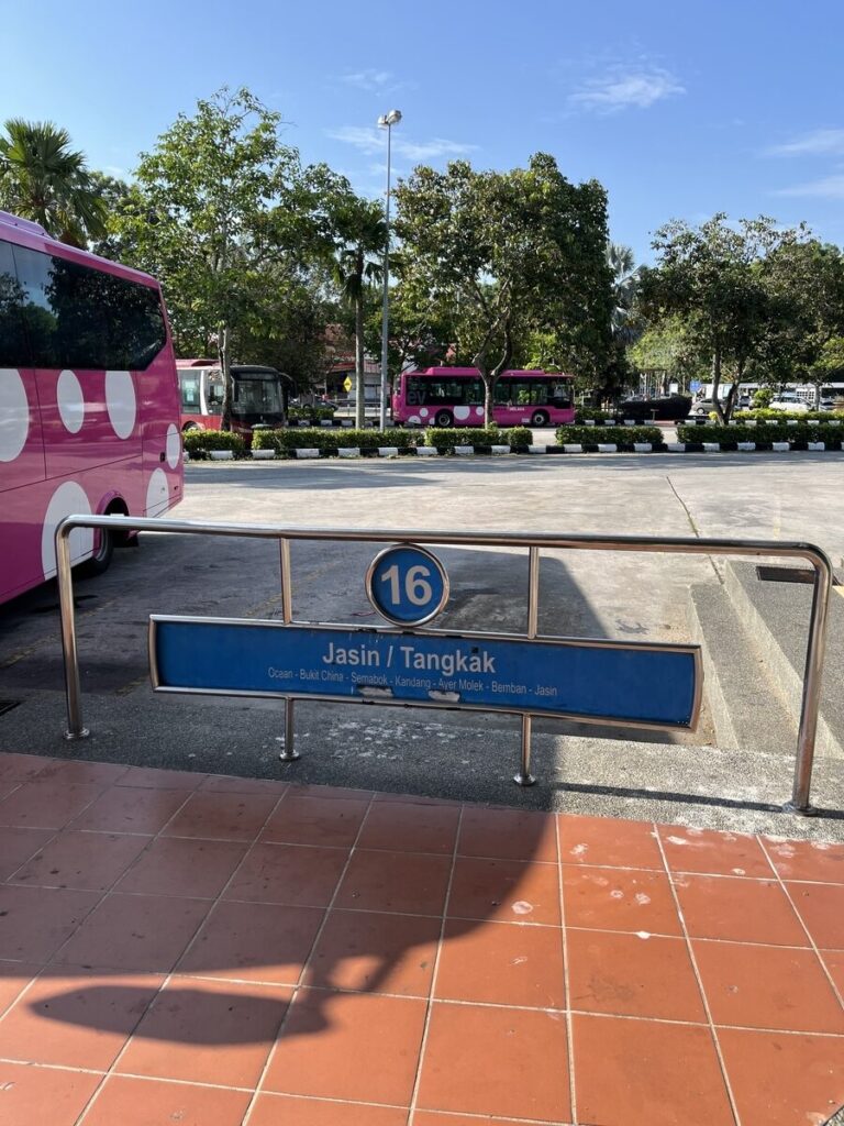マラッカ・セントラルのバスターミナル。ここから16番乗り場にある「100番」のバスで市内へ向かいます。