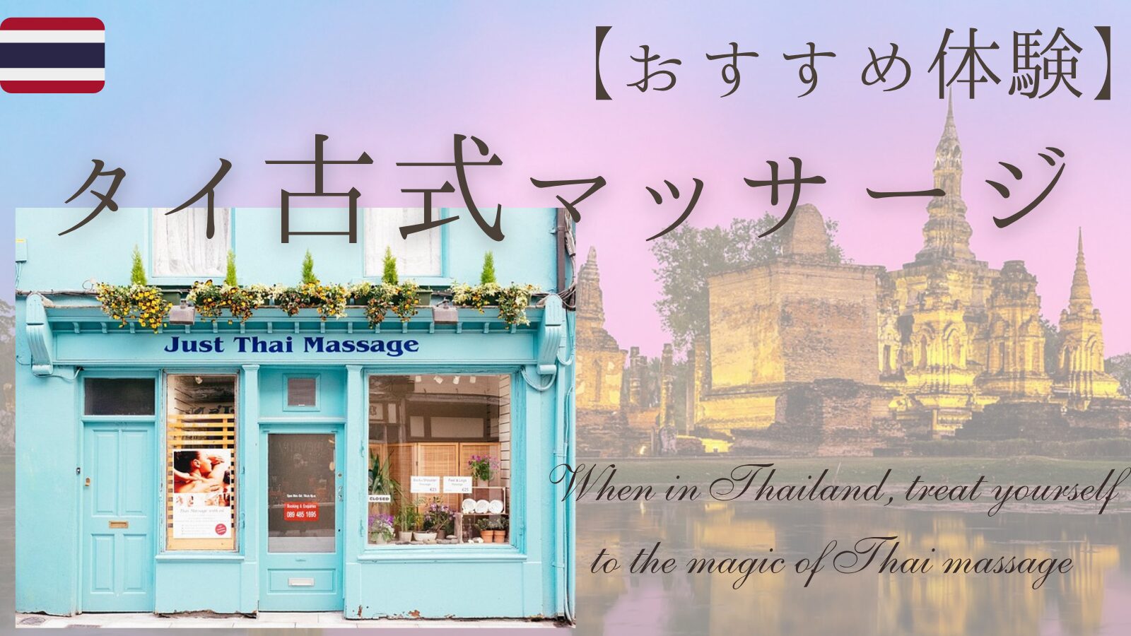 タイに行ったら、ぜひ体験してほしいのがタイ古式マッサージです。私もチェンマイに行ったときに初めて体験したんですが、日本にいた頃は一度もやったことがなかったので、新鮮でした。